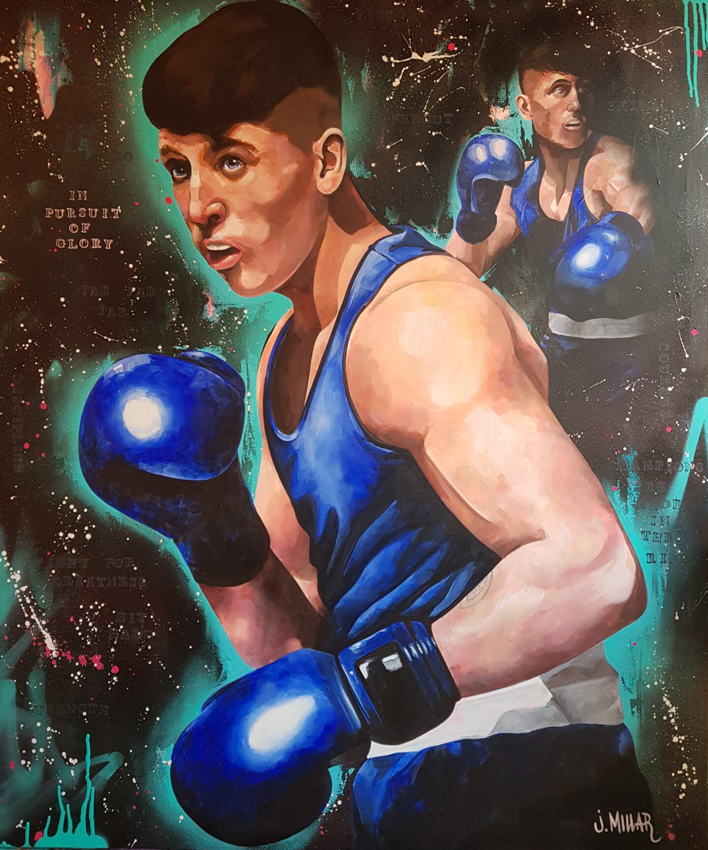 Acrylic and spray paint on board